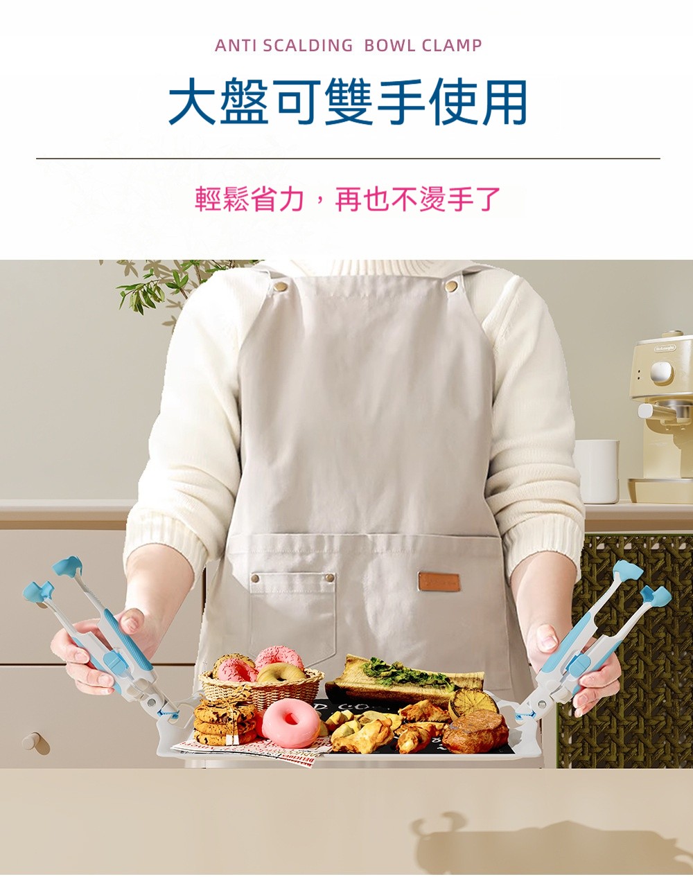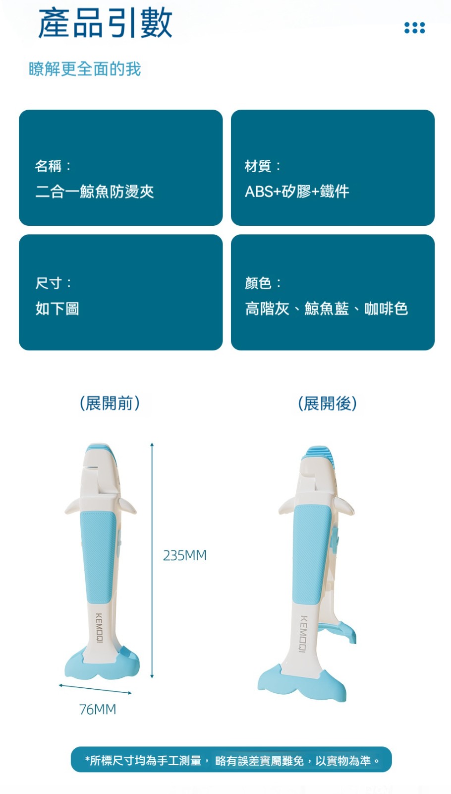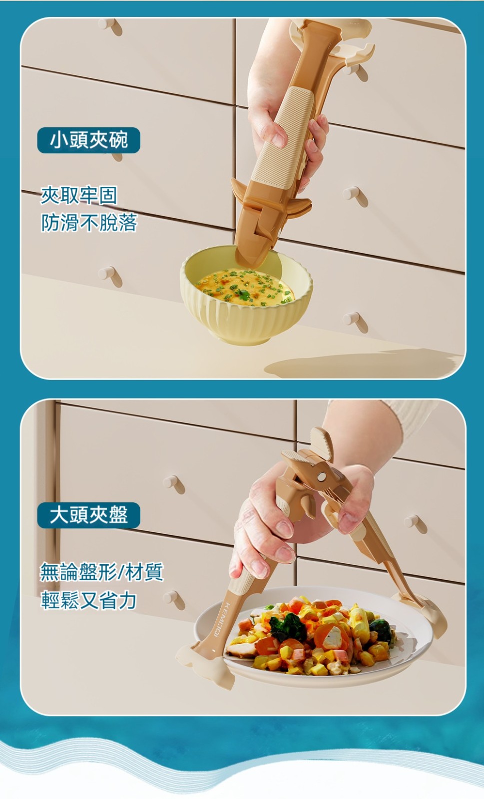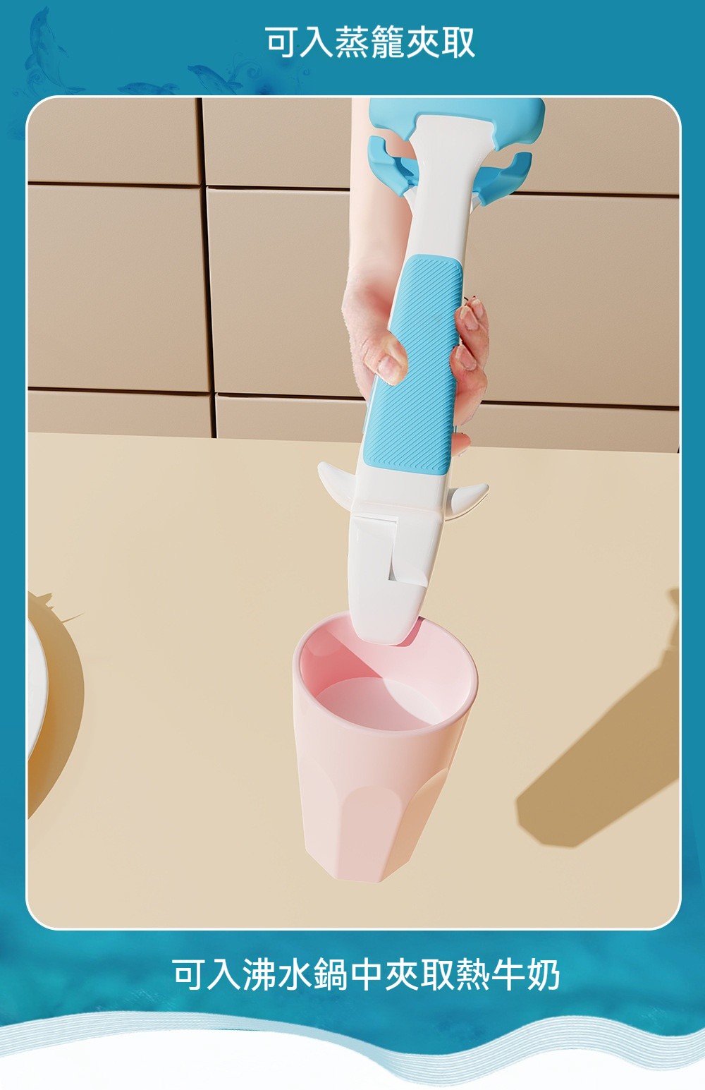 廚房專用二合一鯨魚防燙夾✅波浪紋矽膠夾頭 | 夾得穩、夾的牢✅滑扣式鎖扣收納 | 不佔廚房空間✅防滑紋理手把 | 貼合手掌