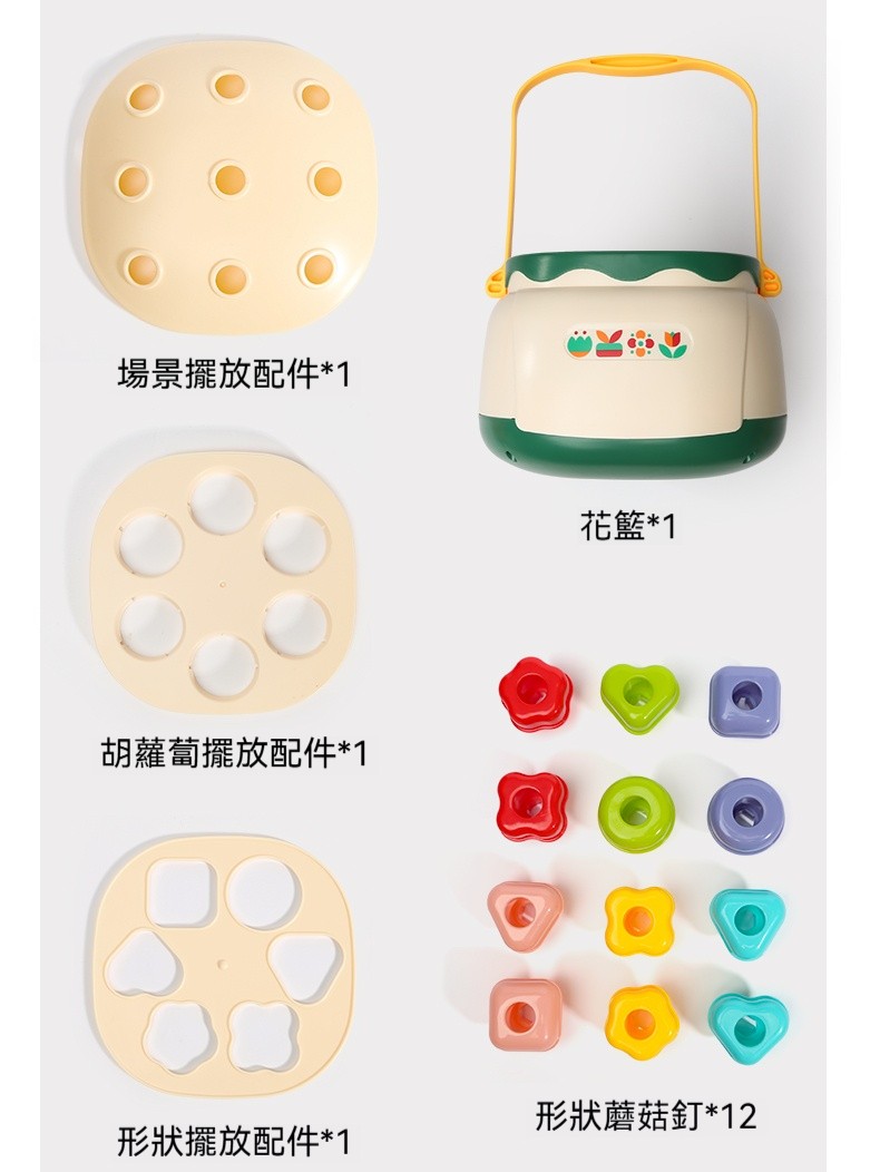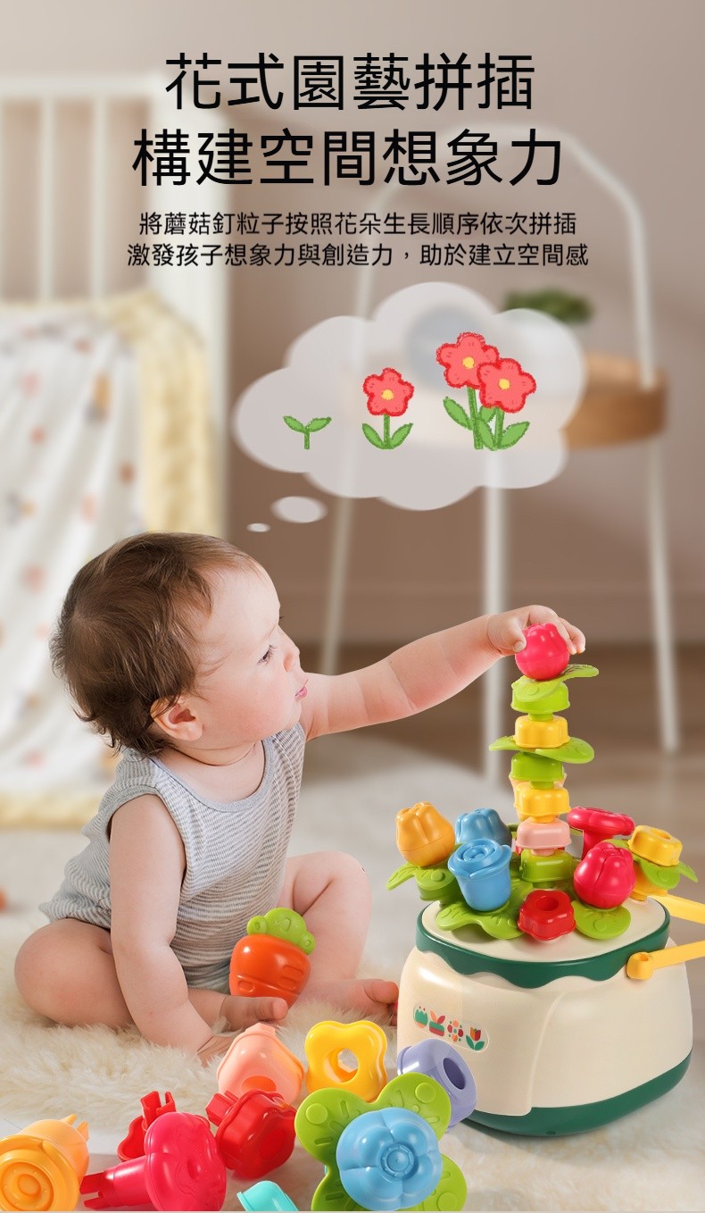 花藝蘑菇釘兒童串珠插花玩具桶✅多種玩法不怕膩 | 一盒助力孩子成長✅形狀配對遊戲 | 拓展邏輯思維✅花式園藝拼插 | 建構空間想像力