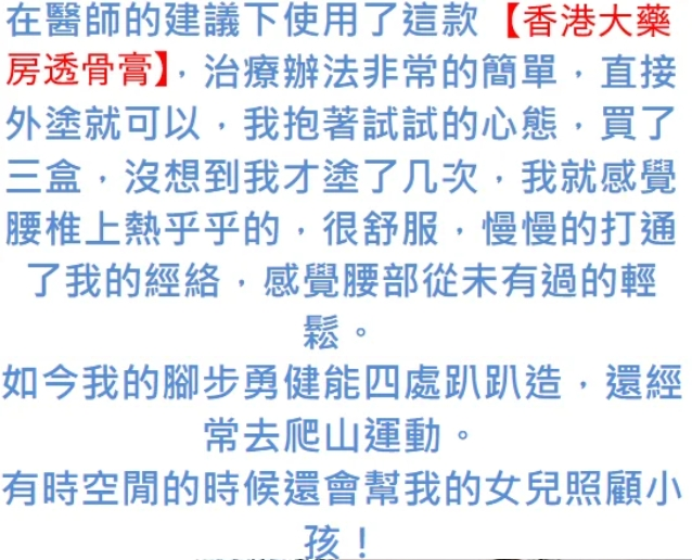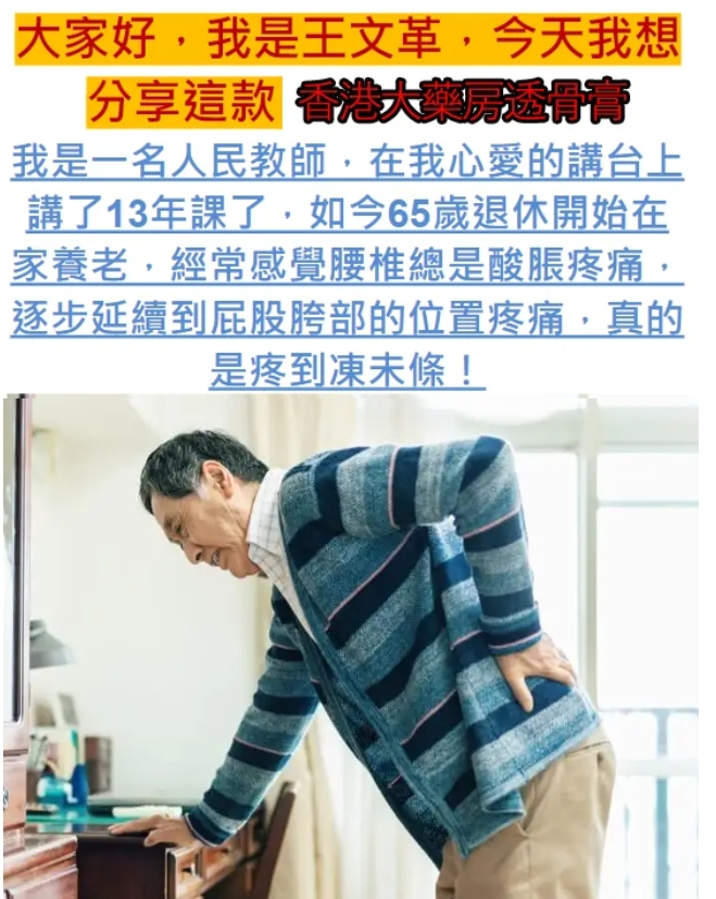 【香港大藥房透骨膏】安全!有效!不復發!3天止痛,腰椎骨病剋星,活骨强骨,病灶消除,身體有勁,行動自如(不打針、不手術、不吃藥)