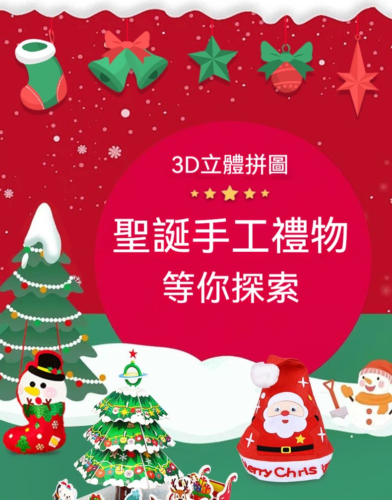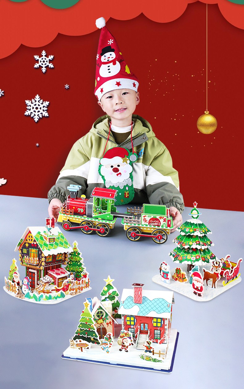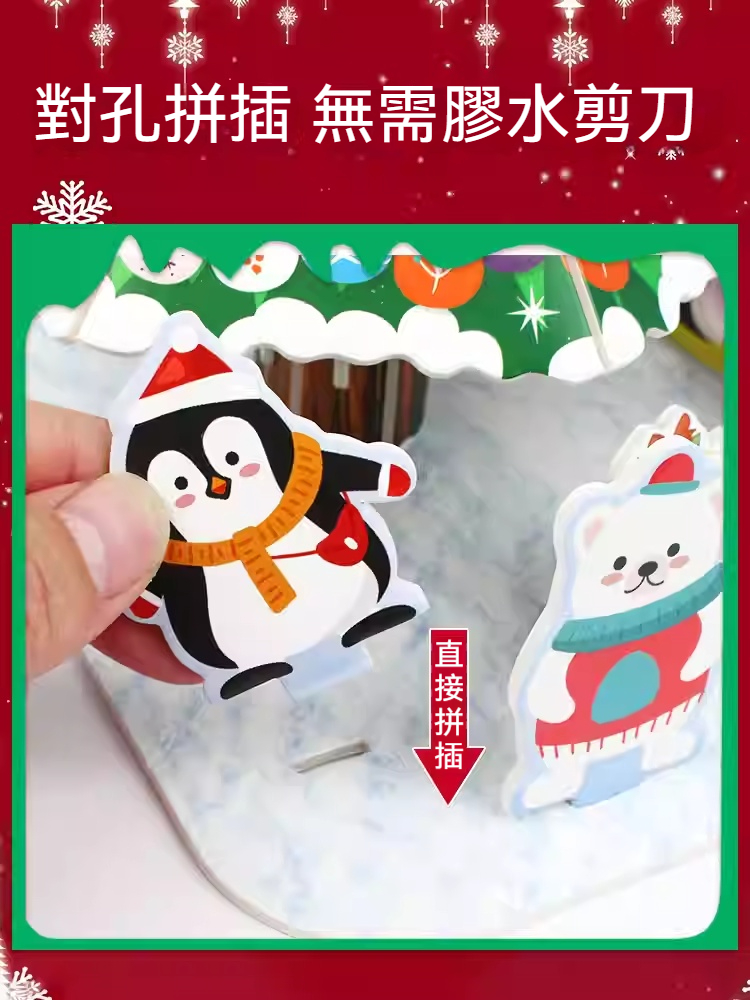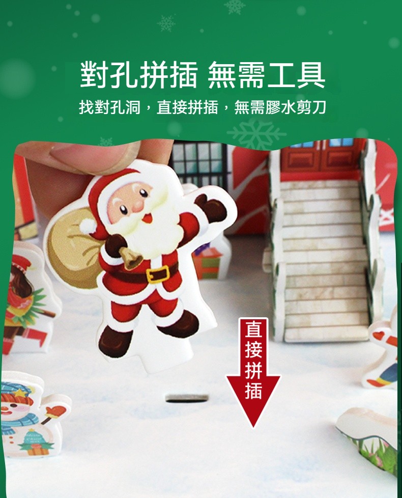 聖誕兒童立體拼圖✅對孔拼插,無需工具 | 卡片圓潤,無毛邊✅造型可愛,顏色鮮豔 | 吸引孩子動手拼裝✅趣味拼撘,動手動腦 | 提升空間思維