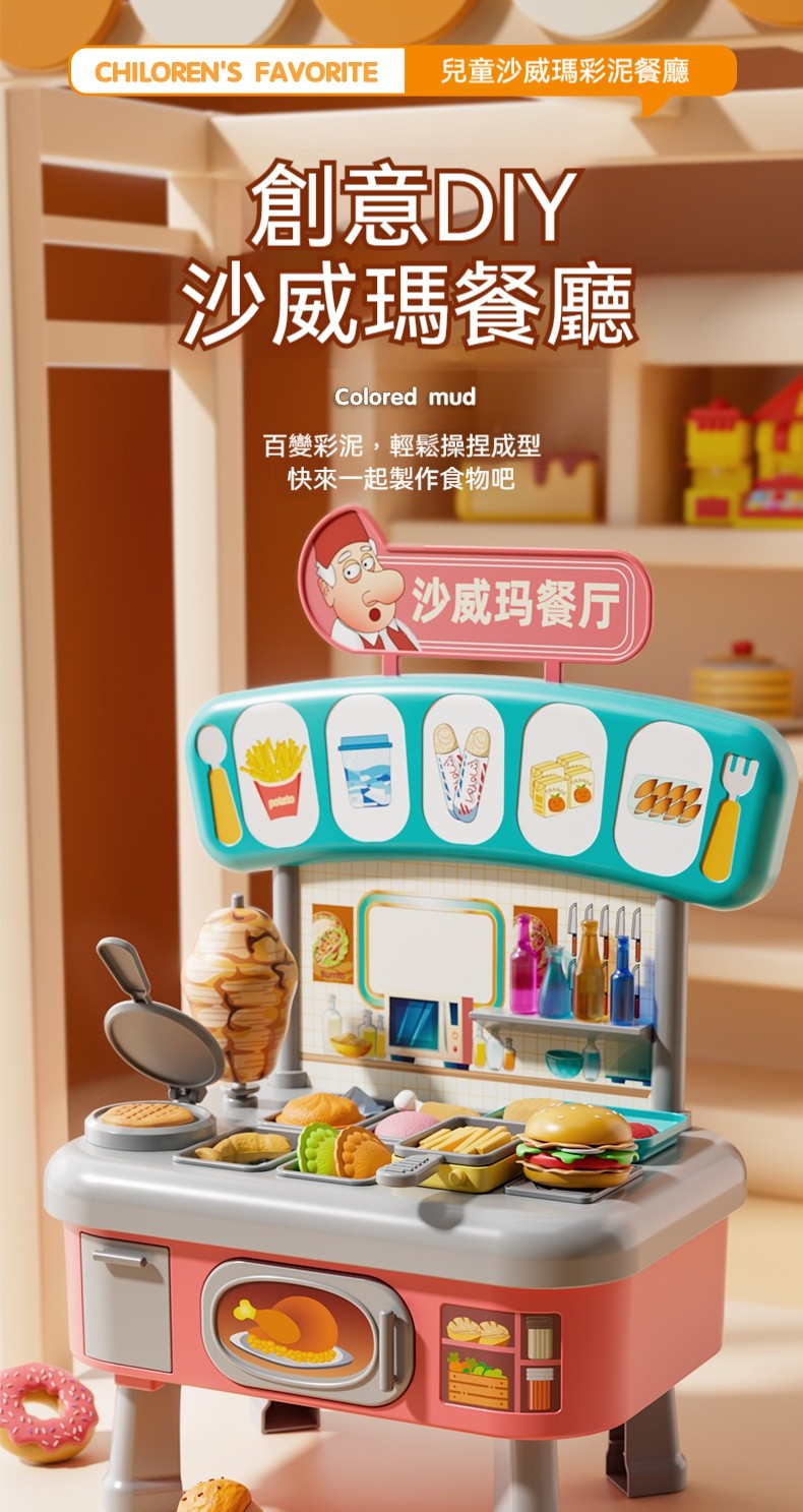 沙威瑪廚房餐廳彩泥✅創意DIY | 思維擴展✅色彩繽紛 | 培養色感認知✅ABS材質 | 安全可靠有保障