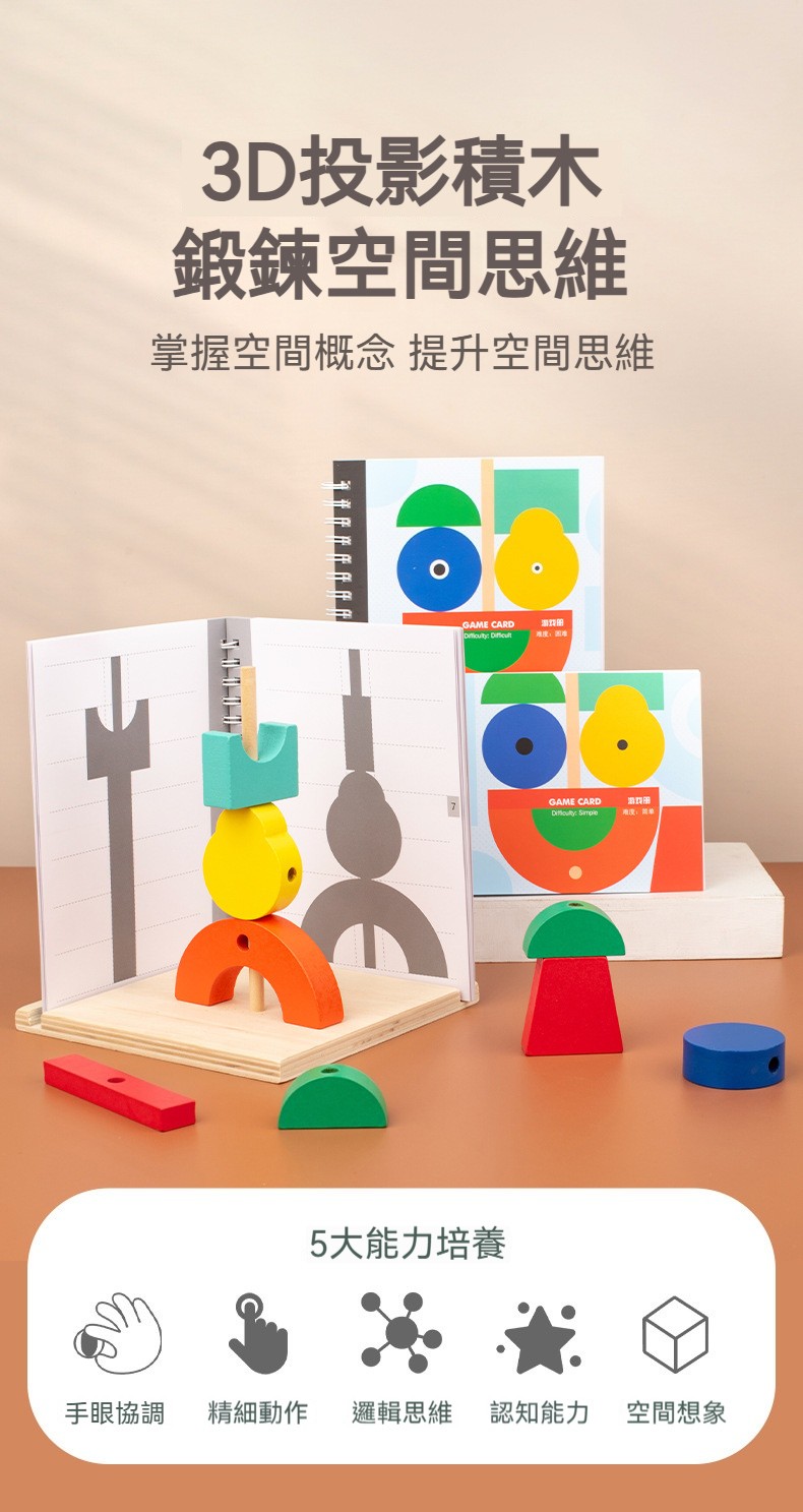 3D空間立體積木✅3D投影積木 | 鍛鍊空間思維✅掌握投影概念、正確辨識幾何形狀 | 辨識方向關係、激發空間認知力✅甄選優質木材 | 匠心工藝製作