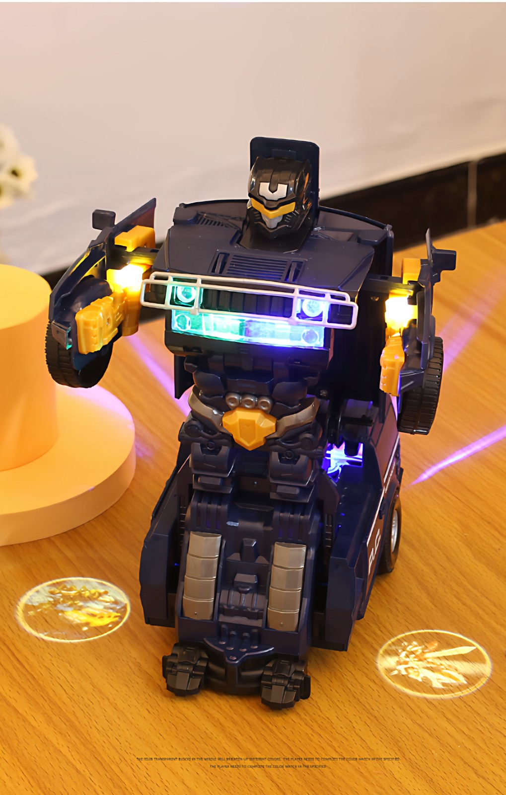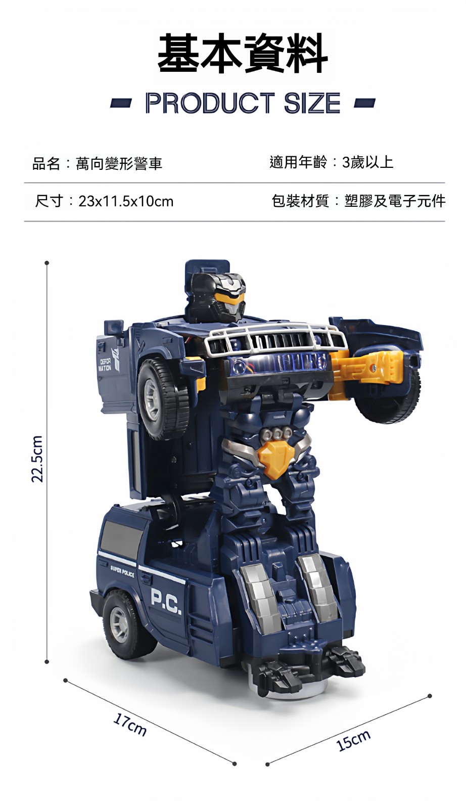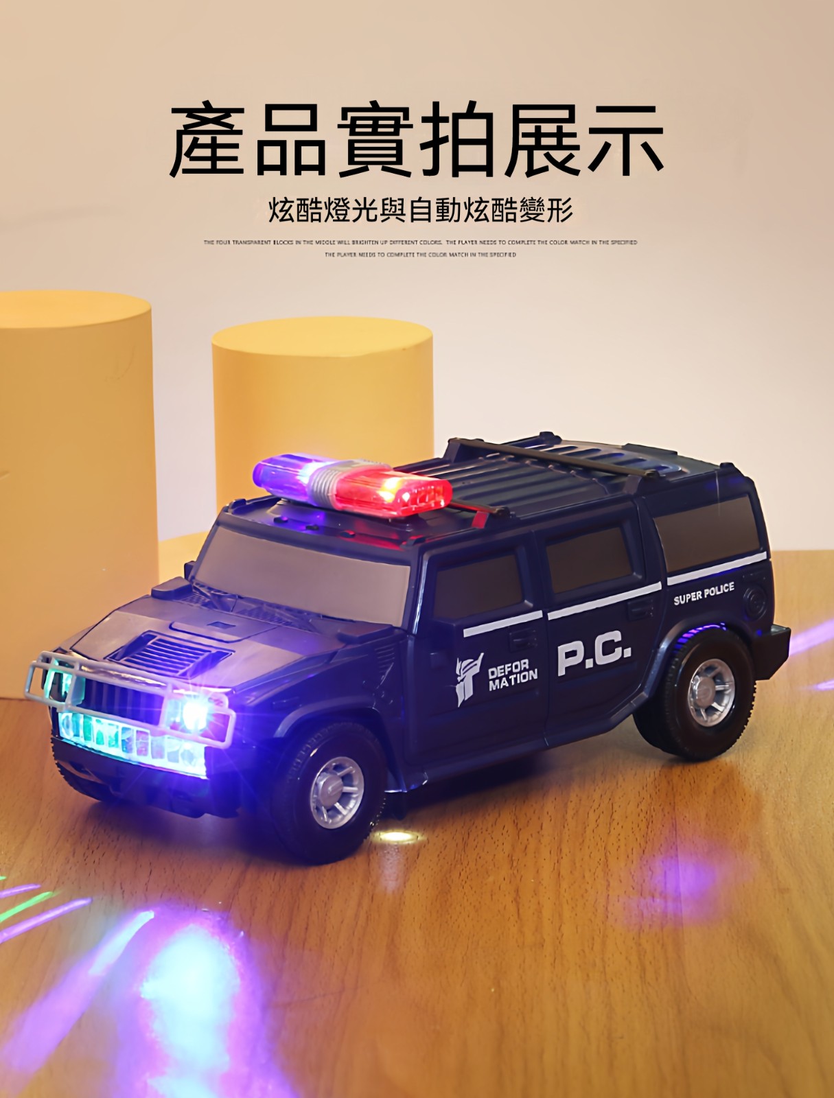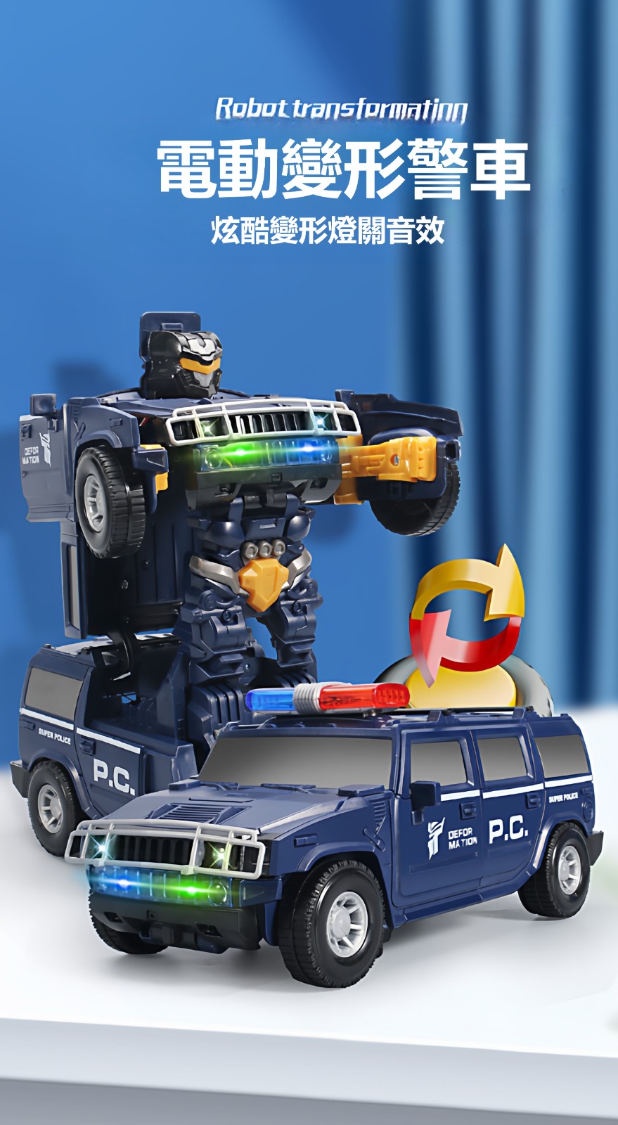變形機器人✅自動避障 | 輕鬆避開屋內障礙✅酷炫燈光帶投影 | 動感音效吸引寶寶注意力✅警車能走能變形 | 還能自動旋轉