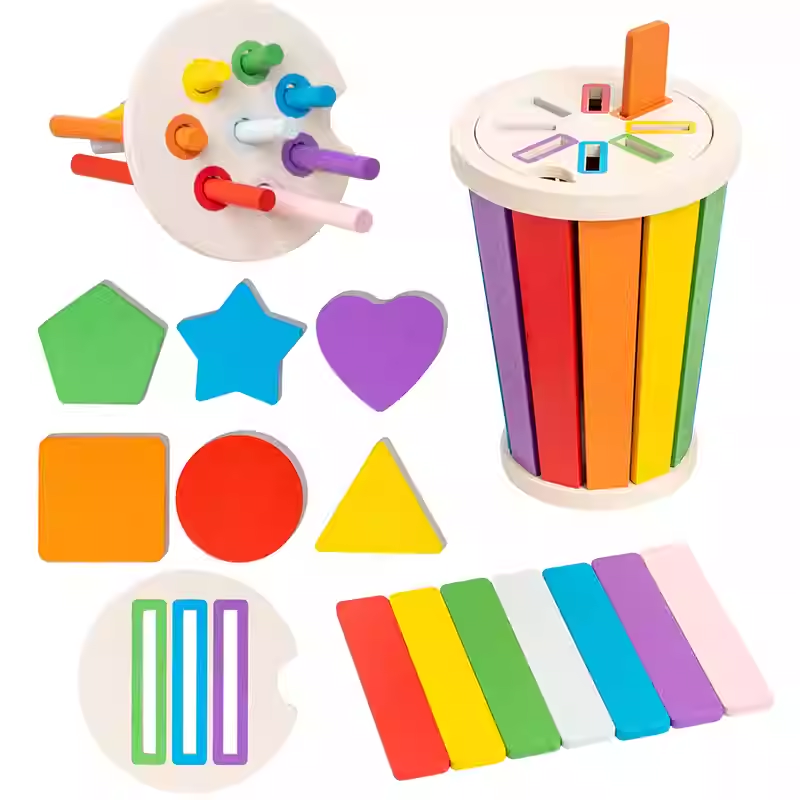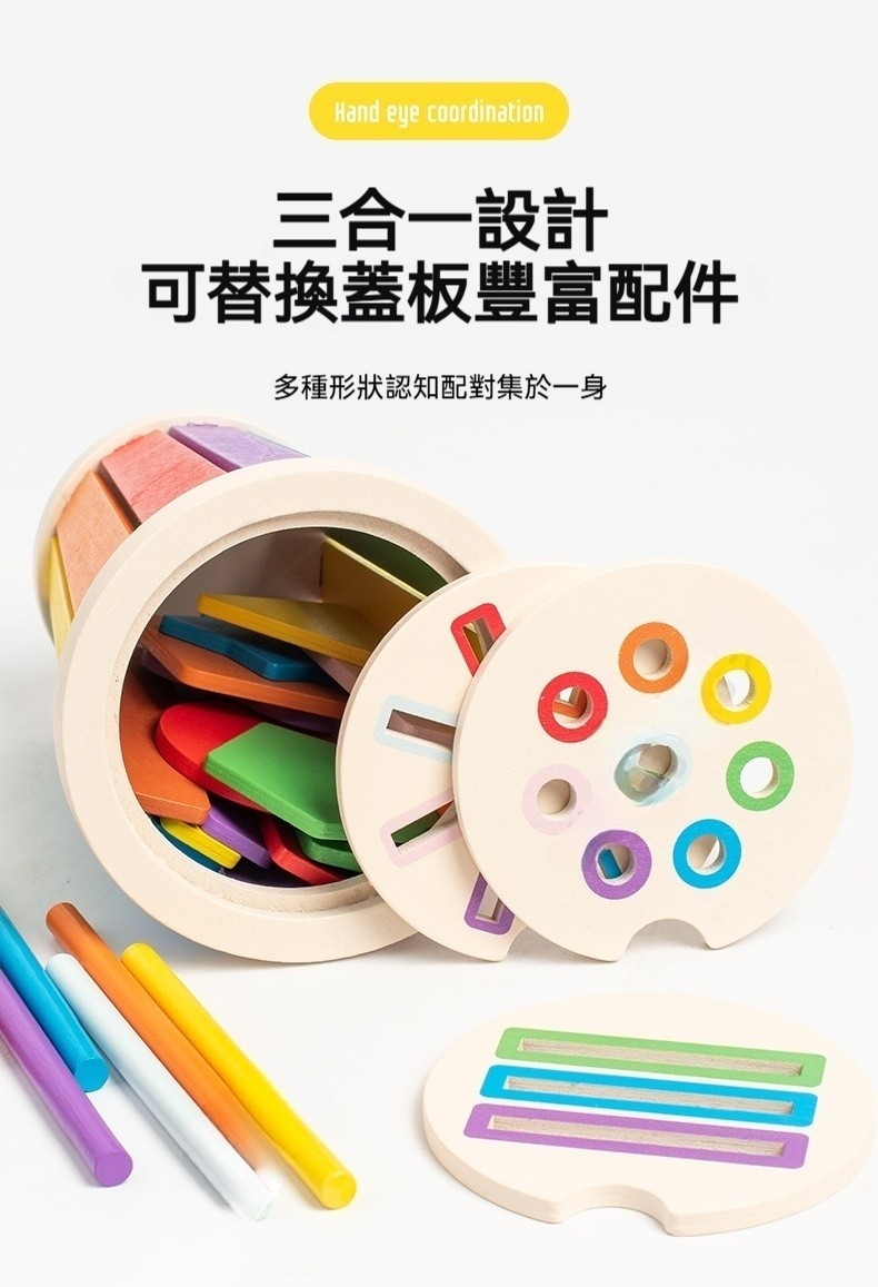 色彩認知桶✅益智早期教育 | 色彩形狀配對✅三合一設計 | 可替換蓋板 | 豐富配件✅鍛鍊精細動作 | 抓握感知