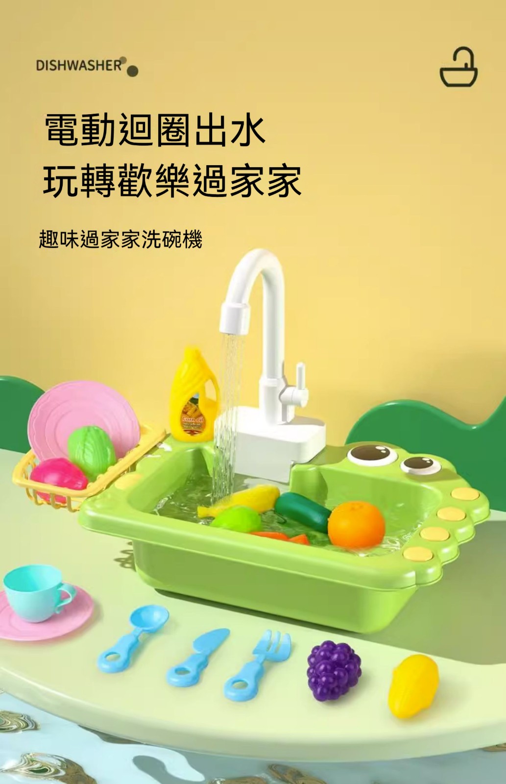 兒童洗碗機玩具✅電動循環出水✅豐富仿真配件✅大容量儲水空間✅收納玩耍二合一