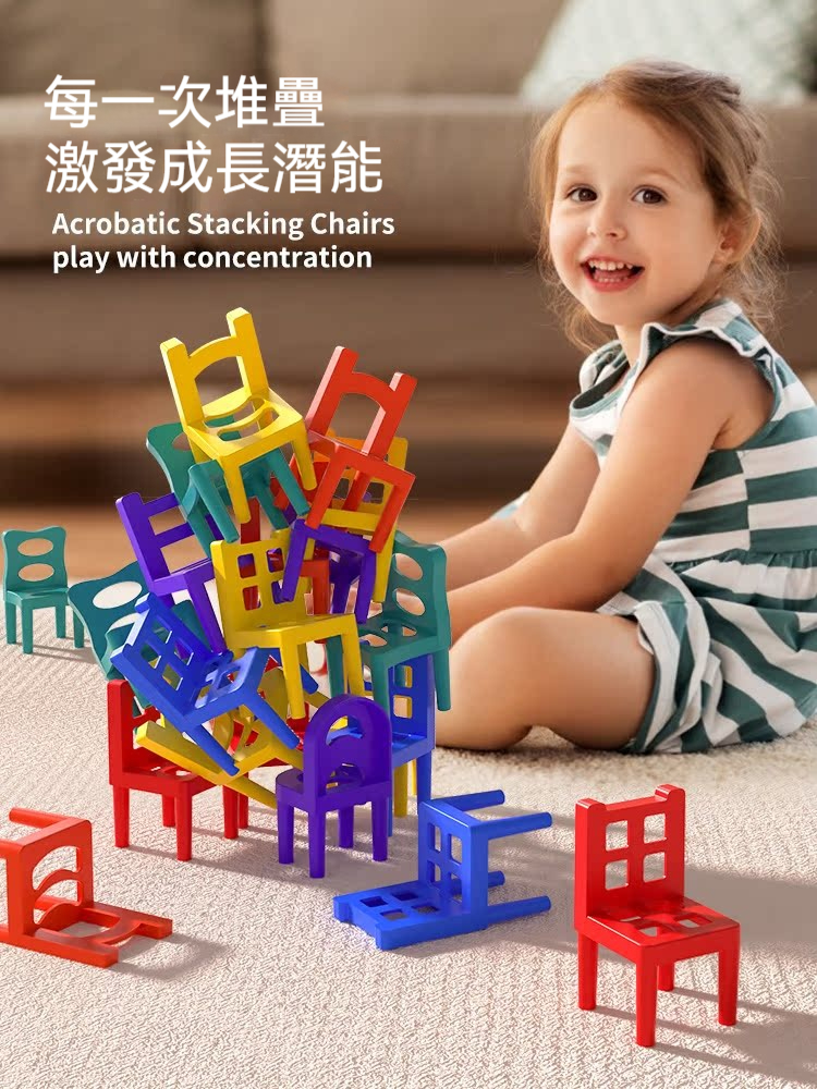 椅子疊疊樂⭐彩色小椅子✅材質無毒塑料+圓角設計✅訓練手眼協調