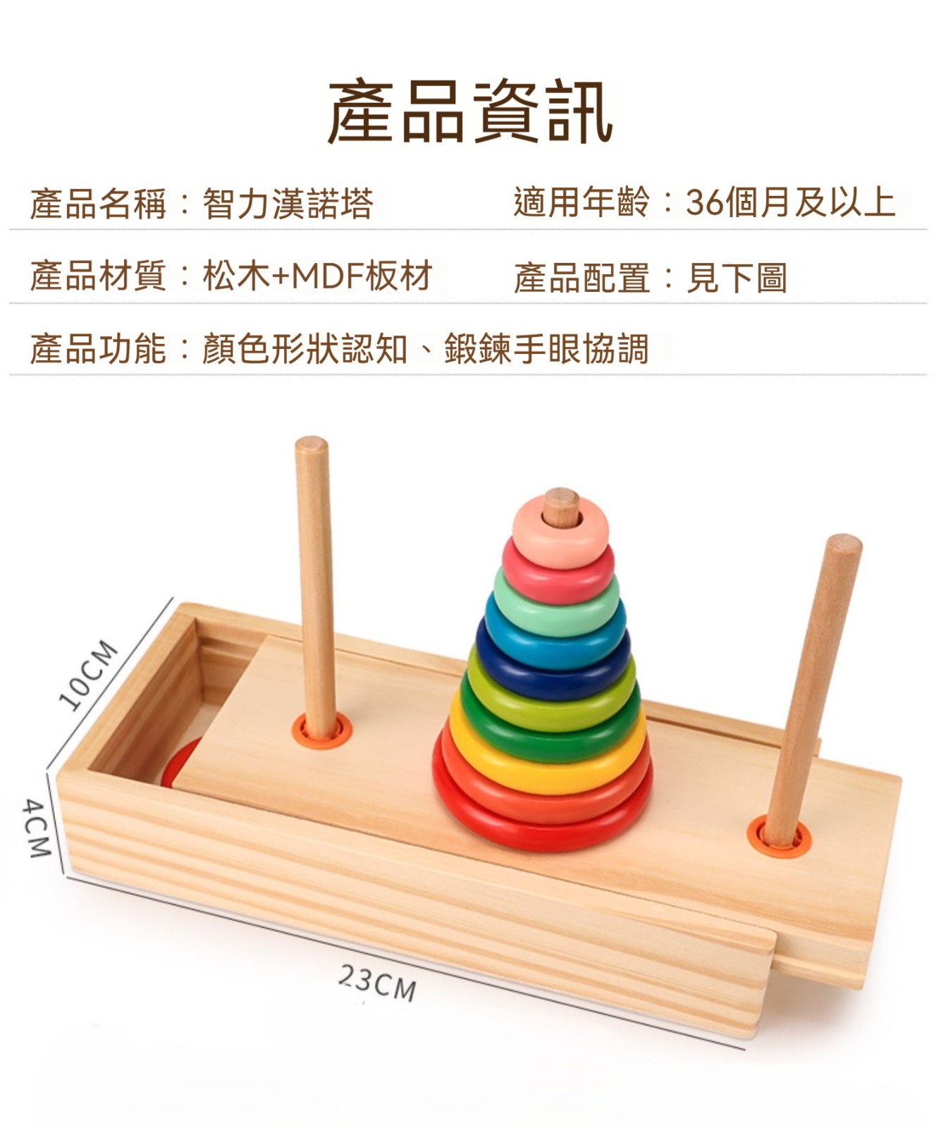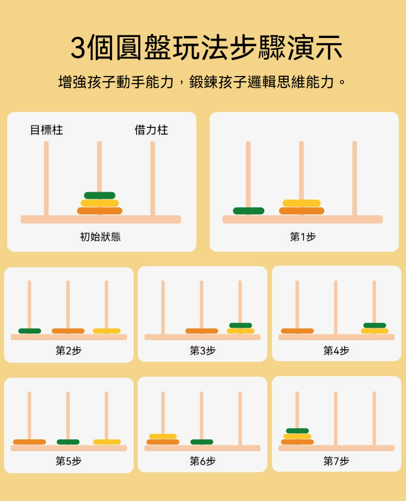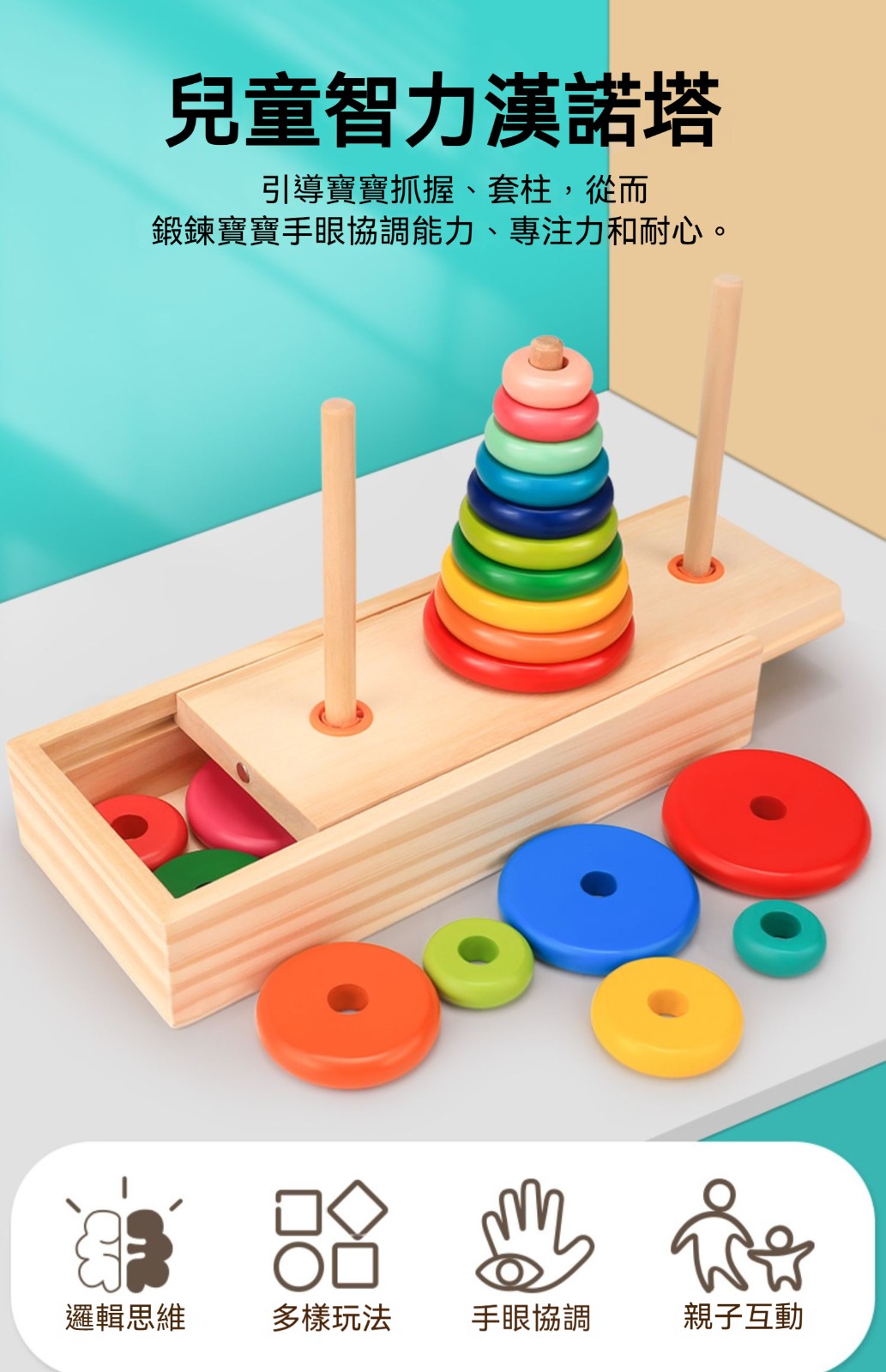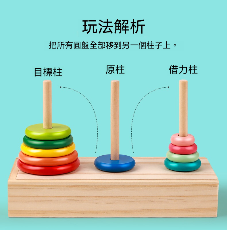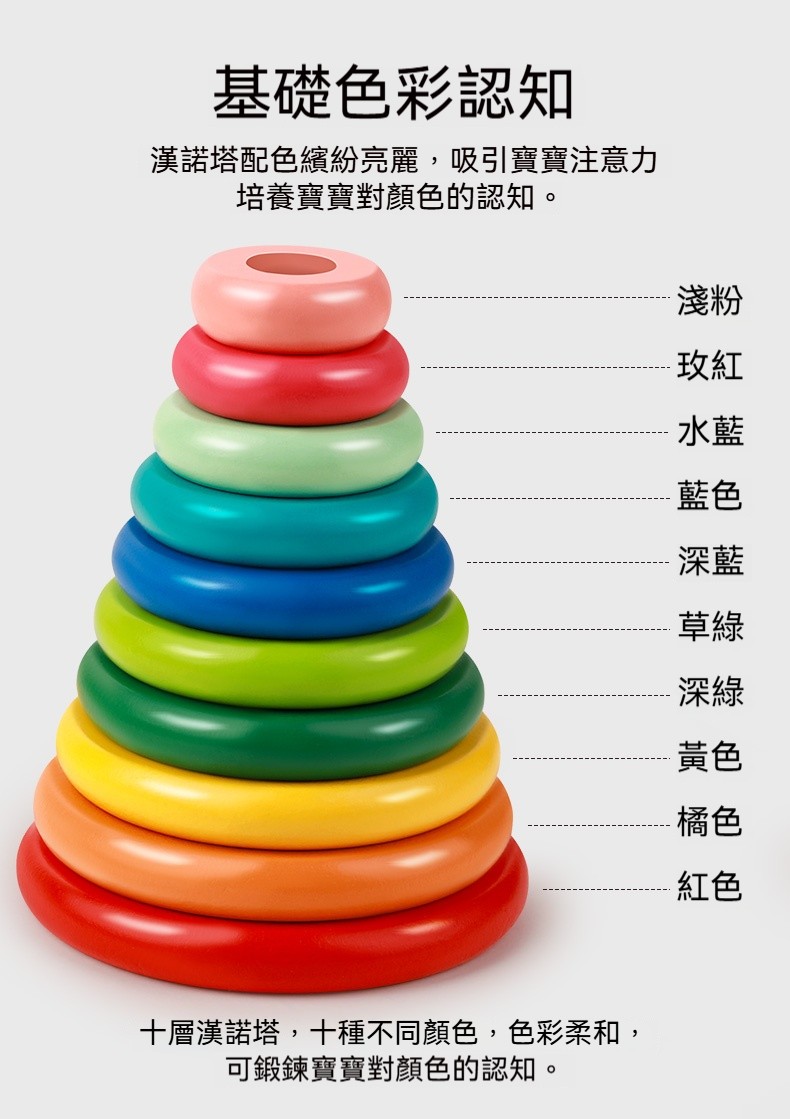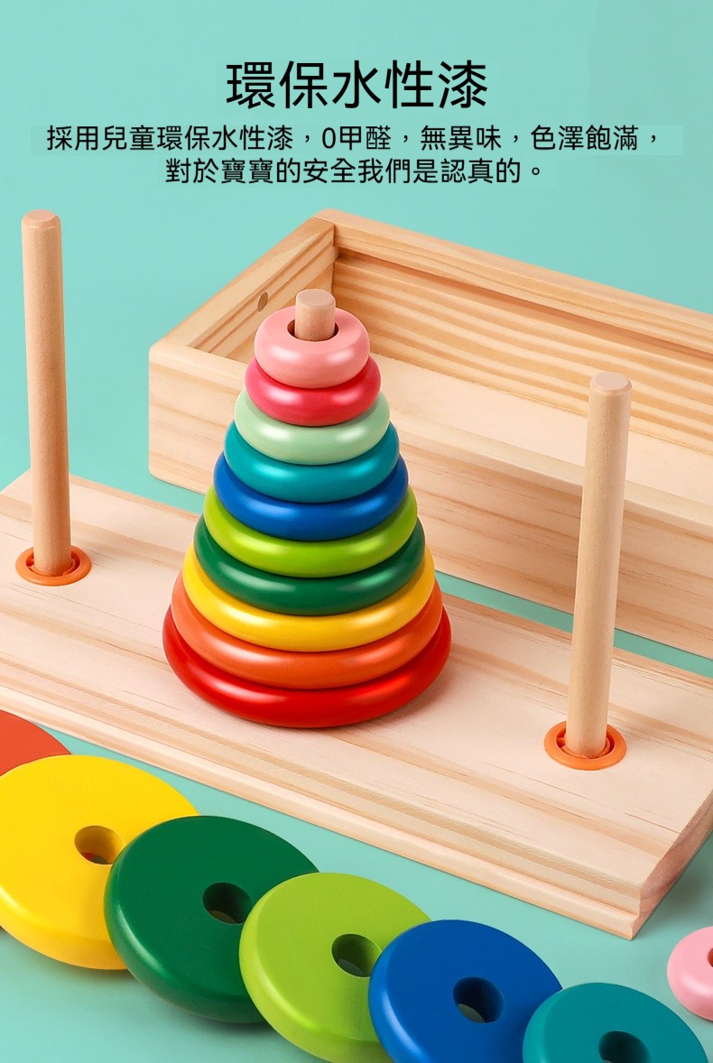 漢諾塔益智力漢羅玩具✅鍛鍊寶寶手眼協調 | 專注力 | 耐心✅基礎色彩認知 | 吸引寶寶注意力✅表面光滑 | 無毛刺