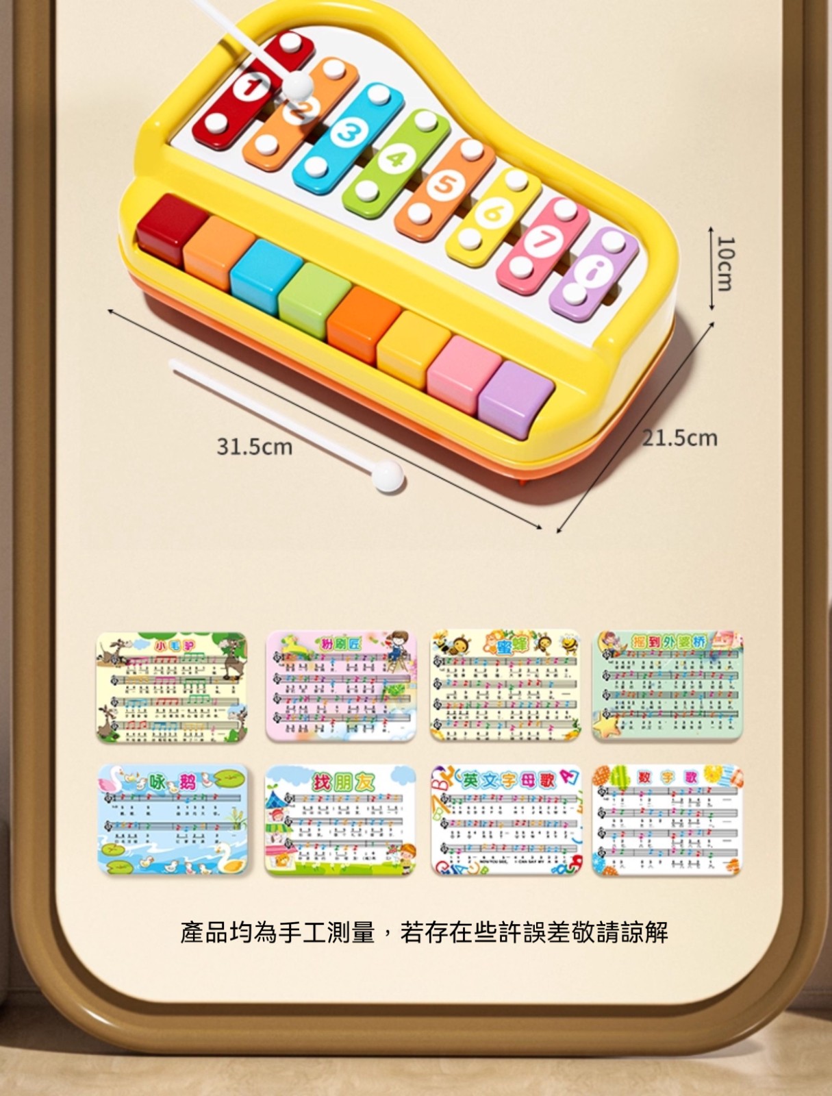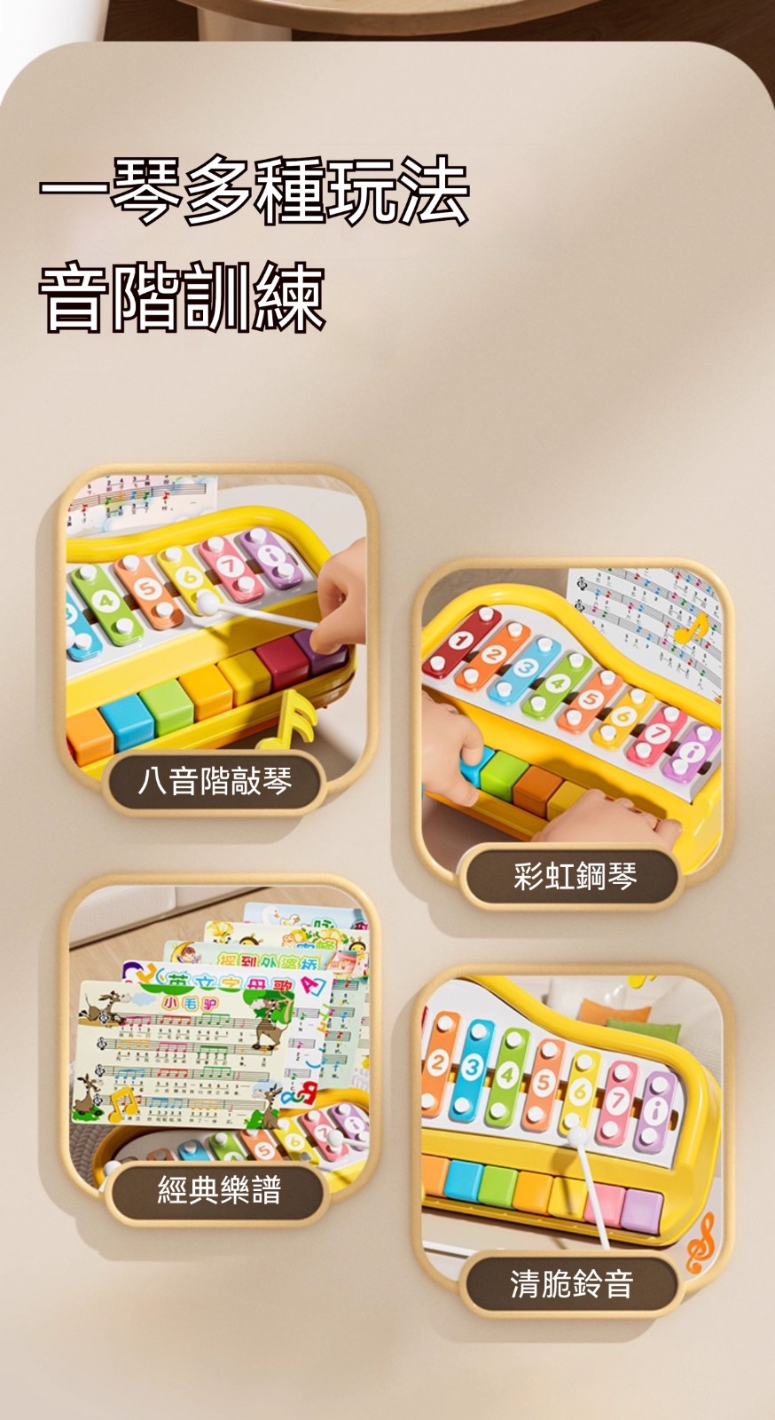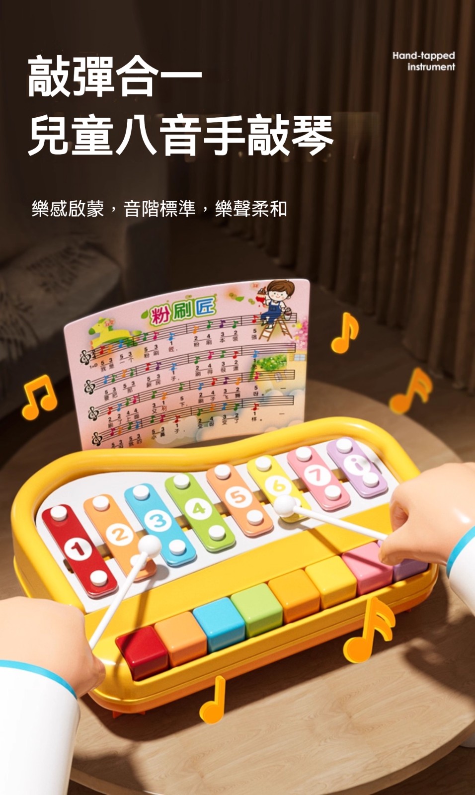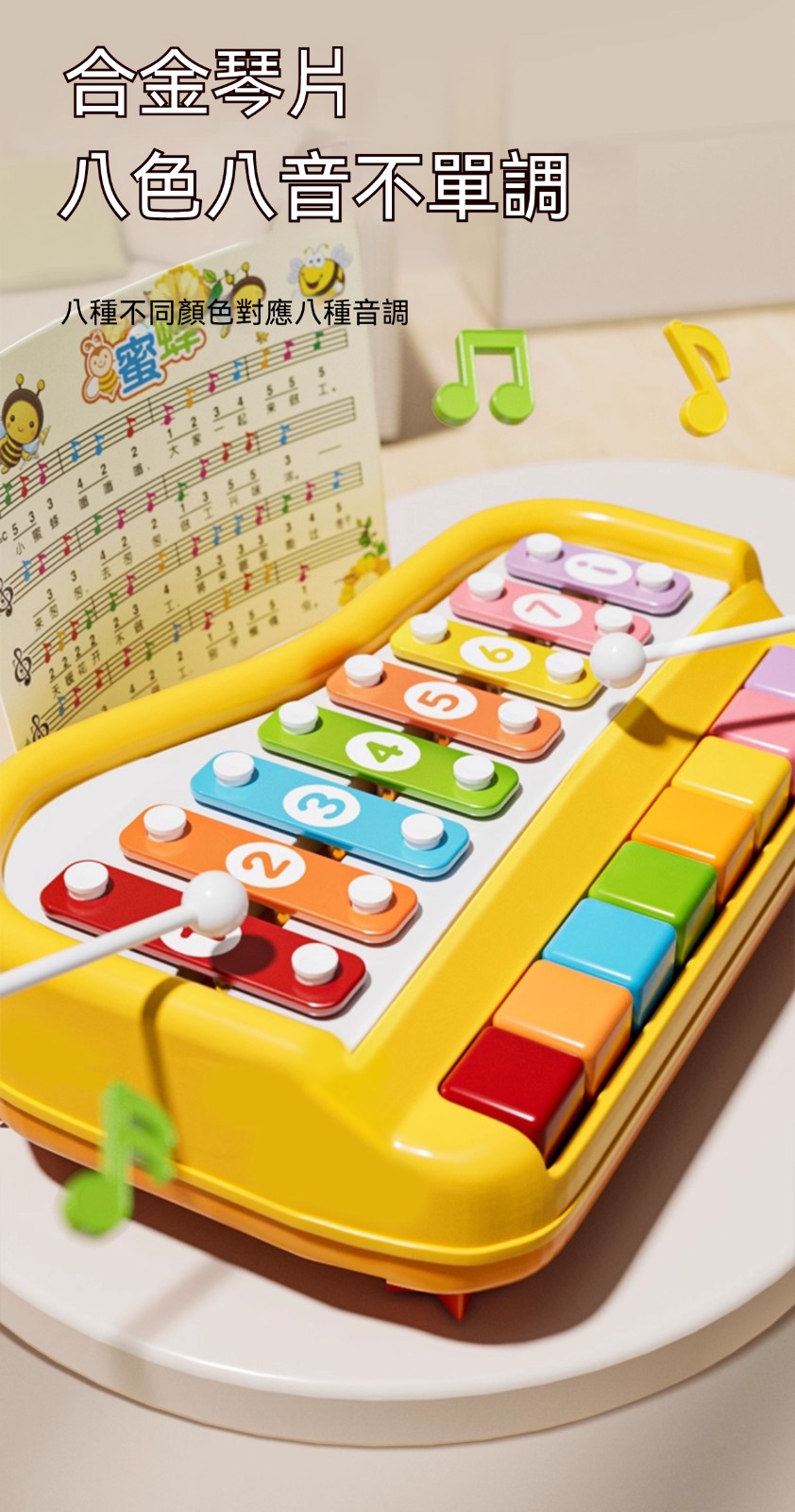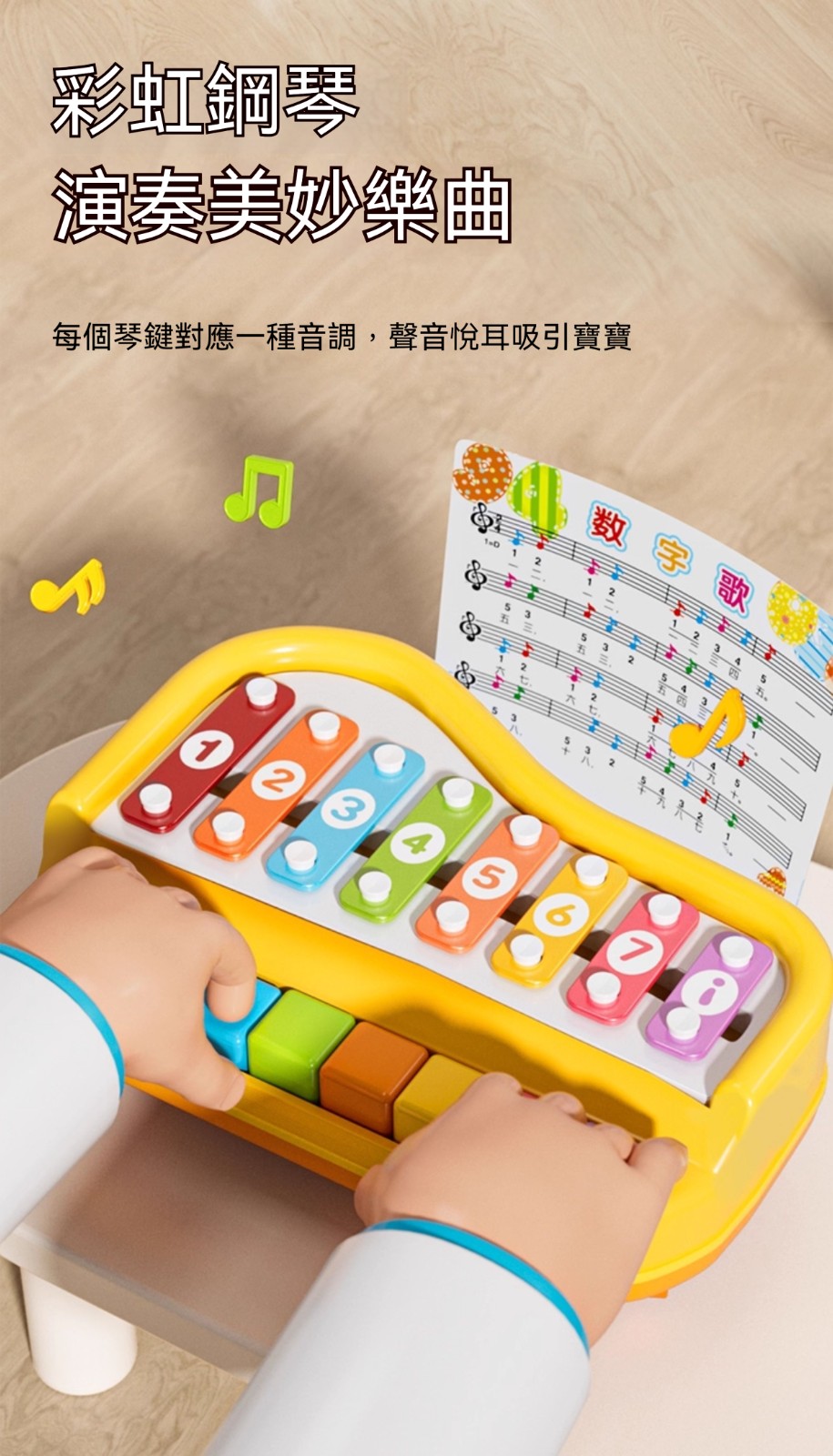 八音敲琴✅一琴多種玩法 | 可彈可敲音質清脆悅耳✅搭配樂譜多首經典童謠 | 彩虹鋼琴演奏美妙樂曲✅抗撞耐摔材質 | 光滑無毛刺