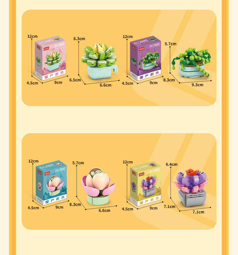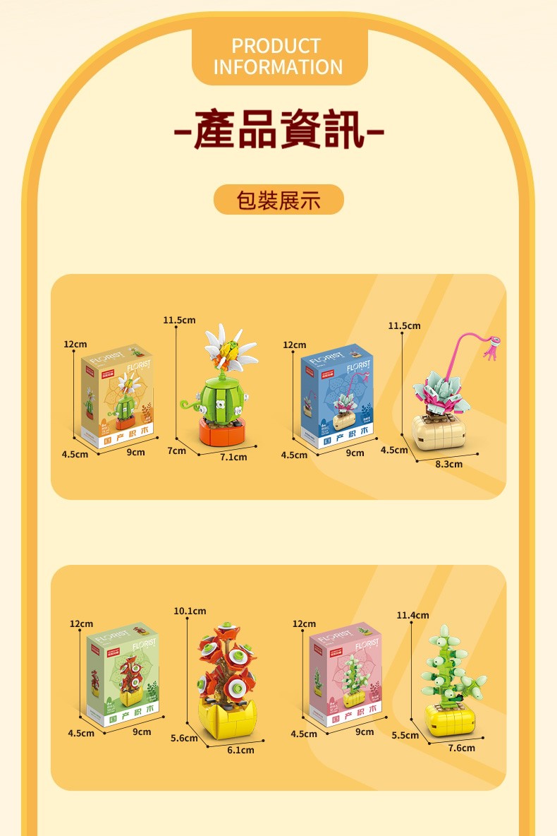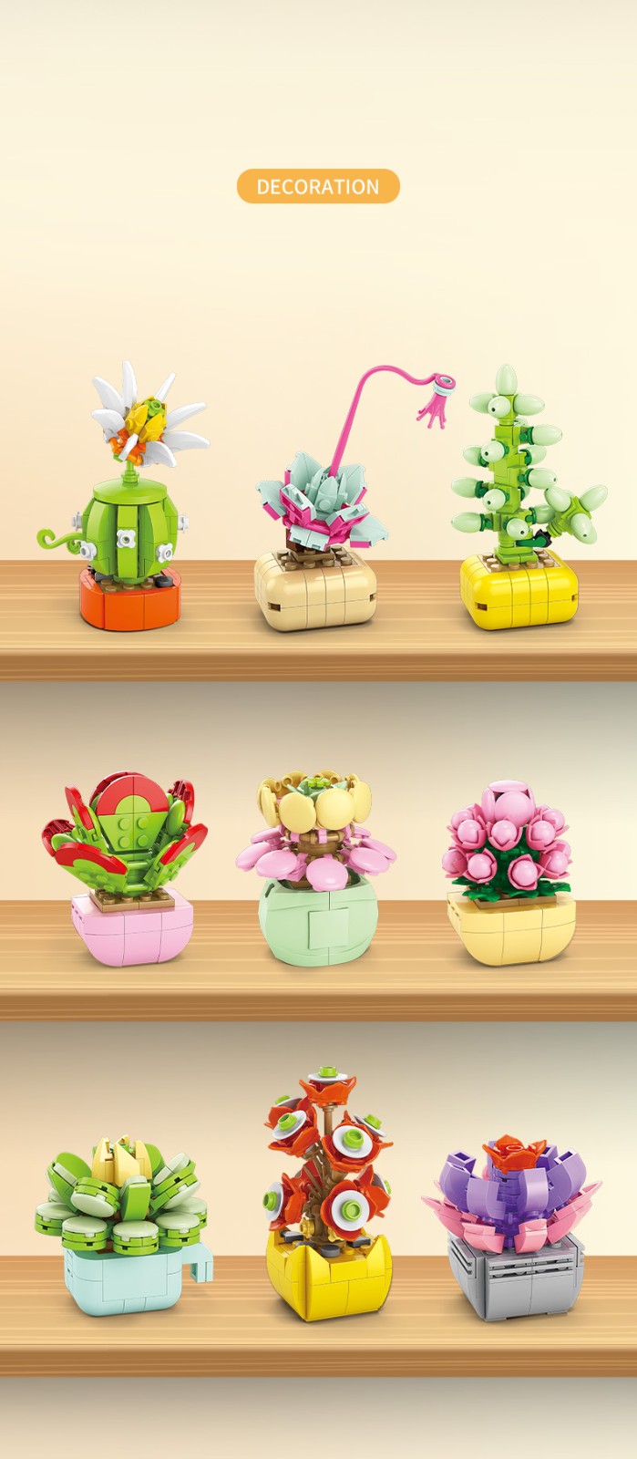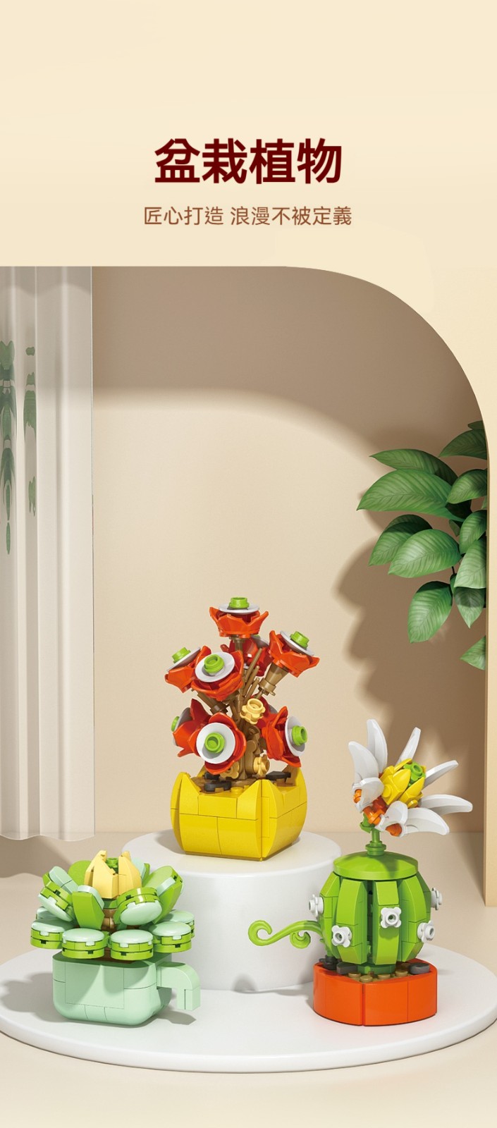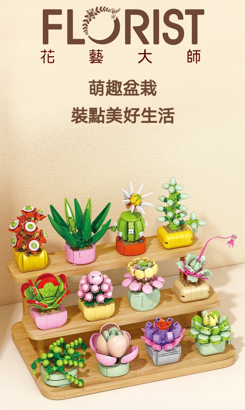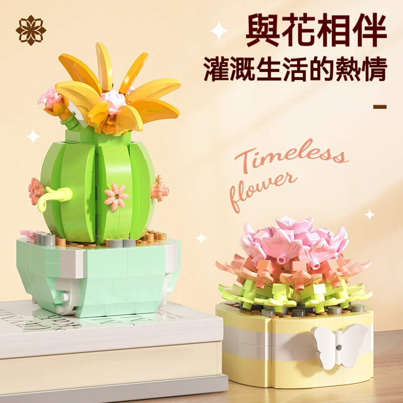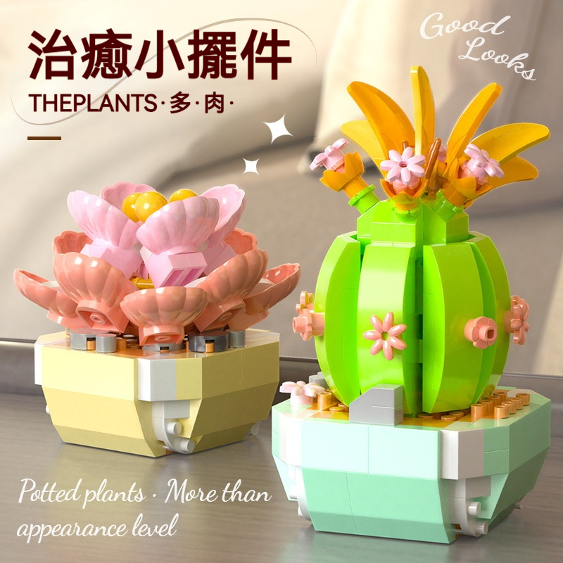 永生多肉盆栽積木✅益智拼裝→訓練小手靈活度✅色彩療癒→擺房間超可愛✅多種款式→12盒任你組合組裝