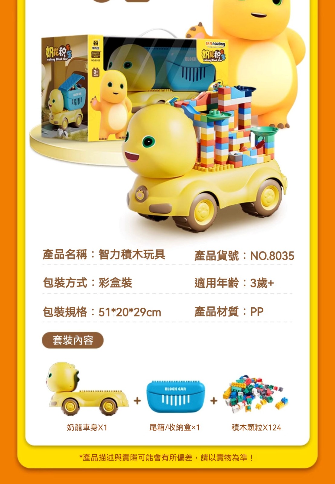 奶龍積木車✅百變積木 | 創意拼搭✅圓潤表面 | 光滑無毛刺✅PP材質 | 安全又環保