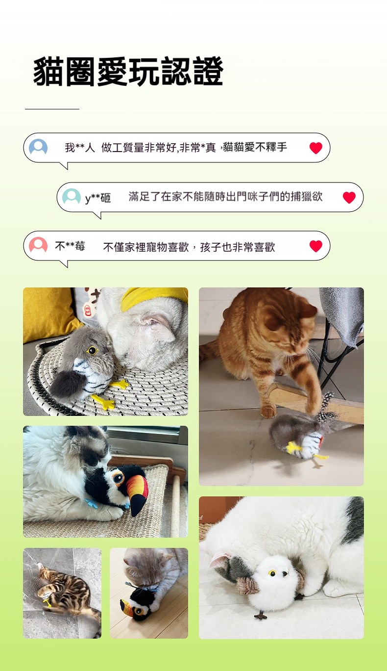 撲騰小肥啾仿真小鳥✅釋放小貓追逐天性✅逼真模擬動物皮毛質感✅原創專利/仿生機芯